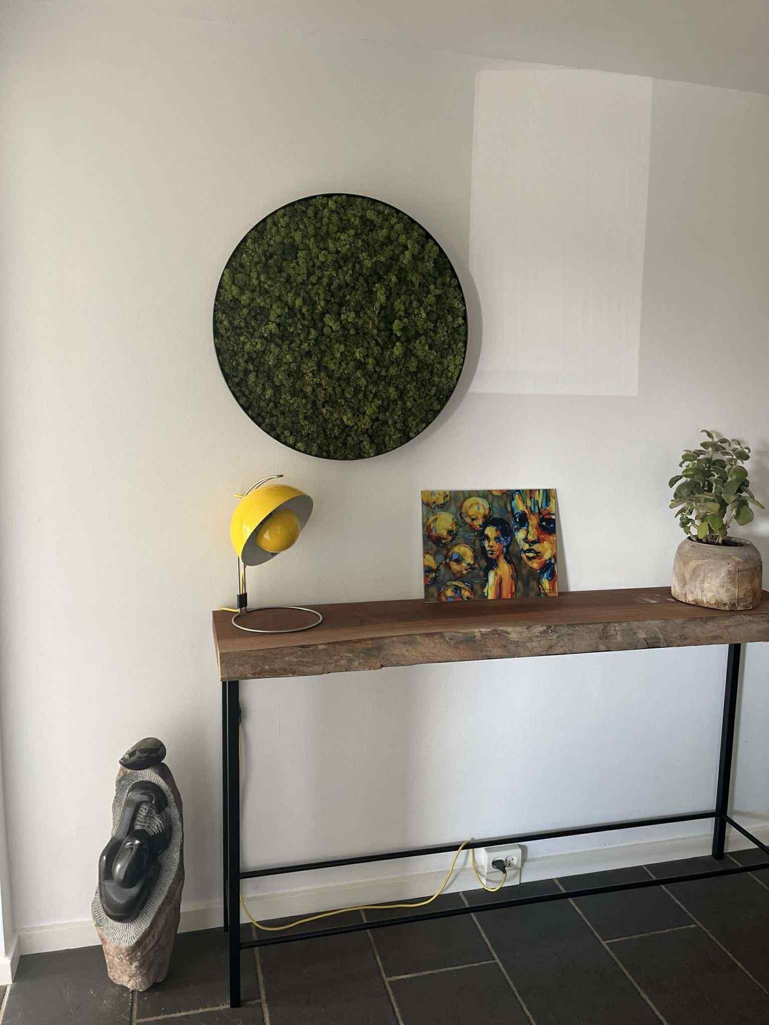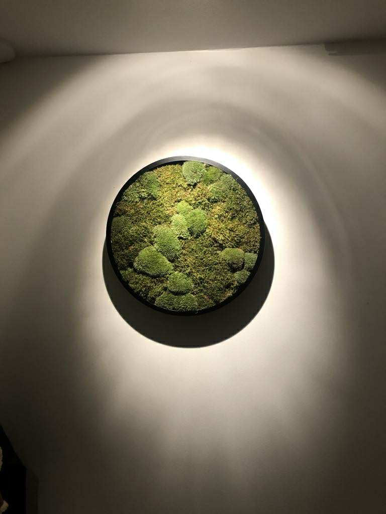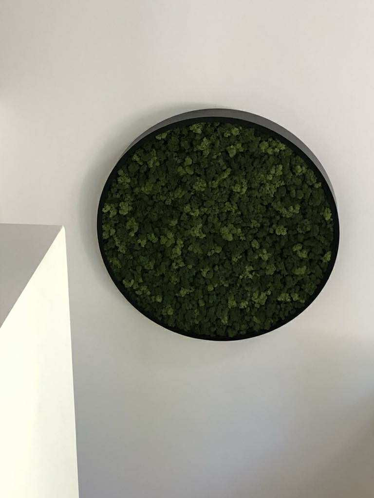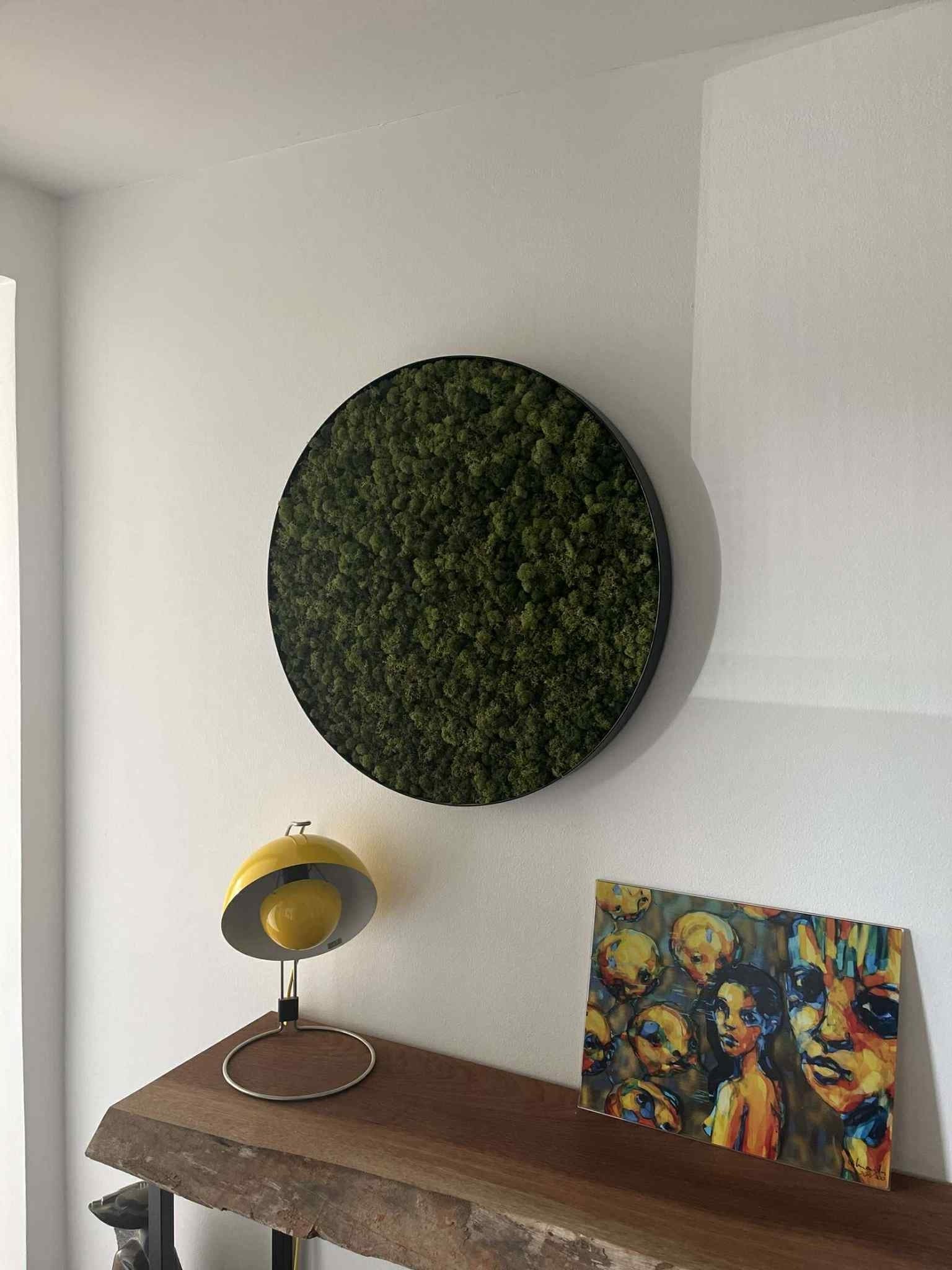 Eksklusiv vægdekoration med naturlig, konserveret mos – indrammet i en massiv stålramme af høj kvalitet.